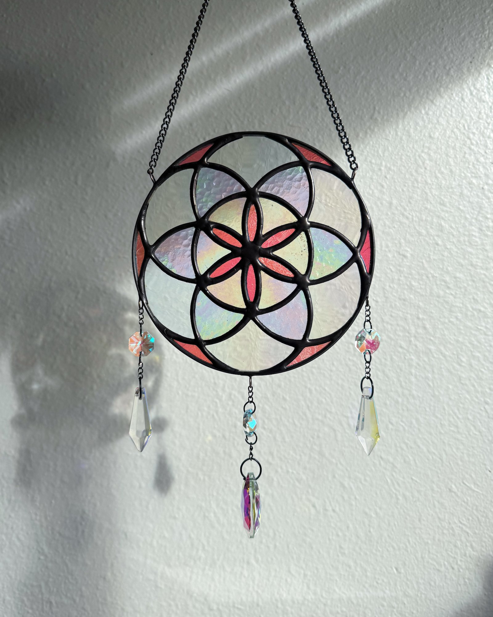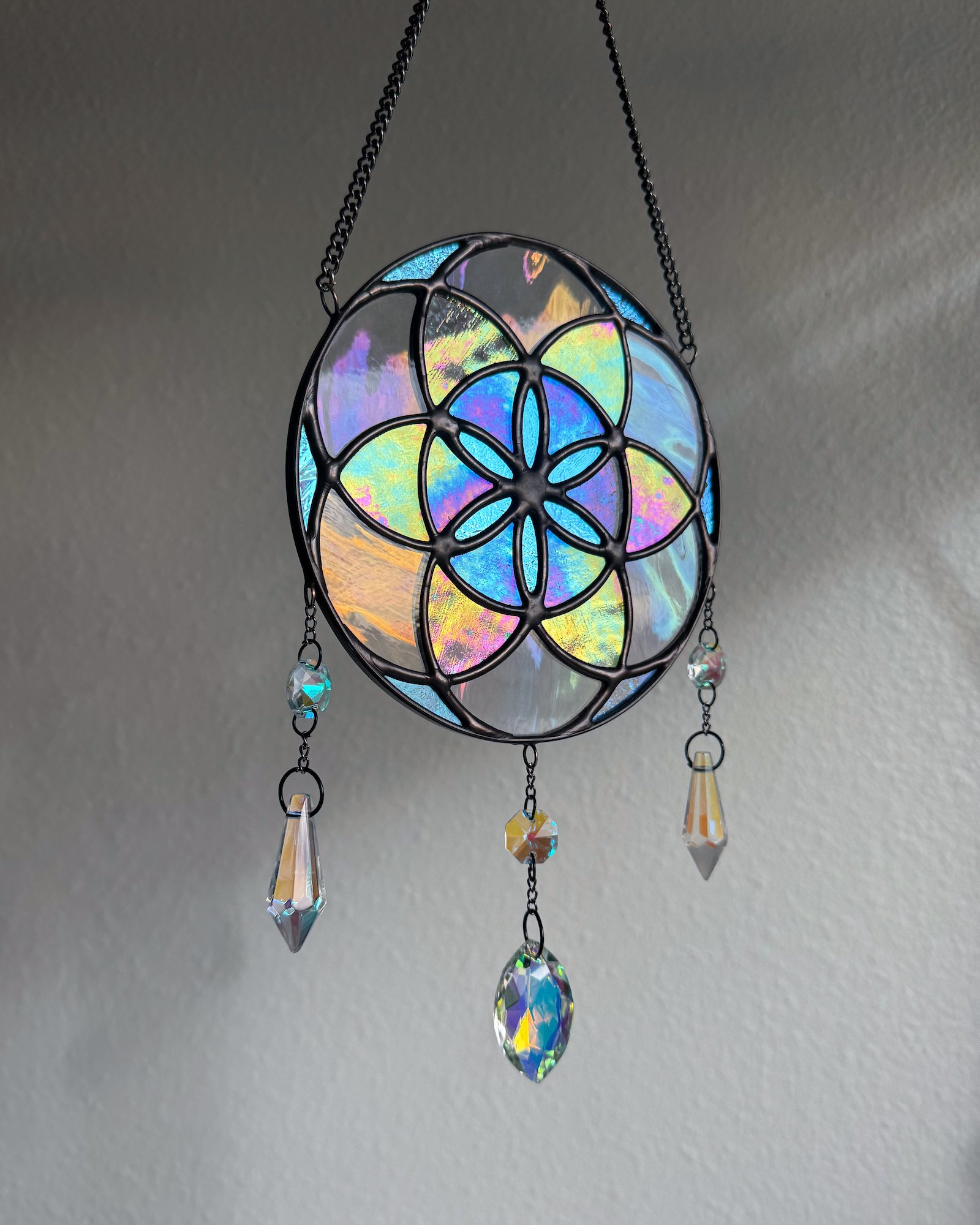 Dichroic Seed of Life Stained Glass Suncatcher Mobile